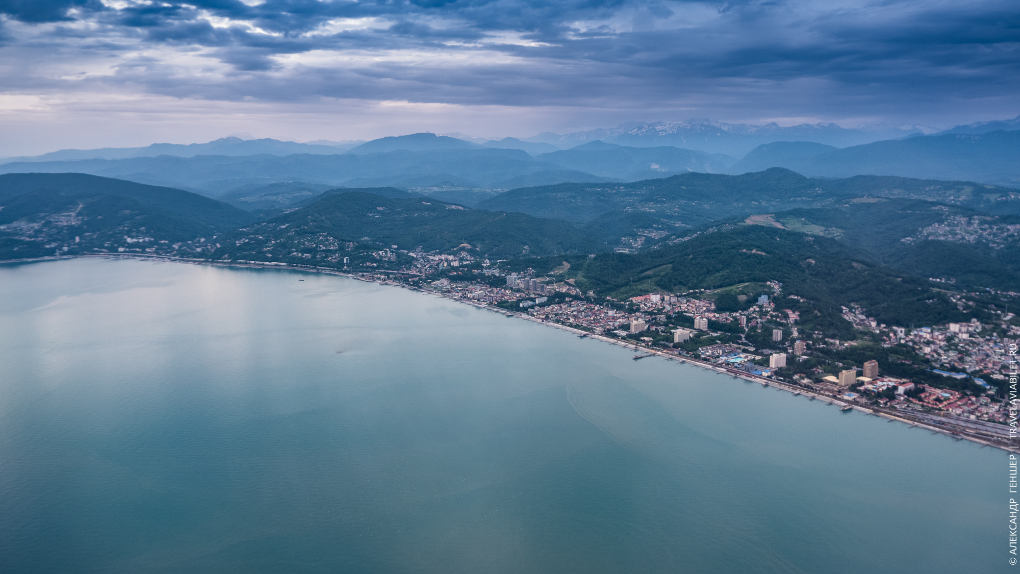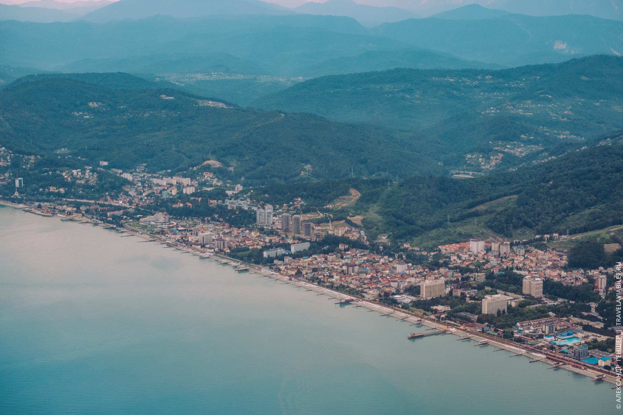 Именно с высоты можно оценить протяженность Сочи, которая составляет более 100 км. Напомню, что он является самым длинным городом России.