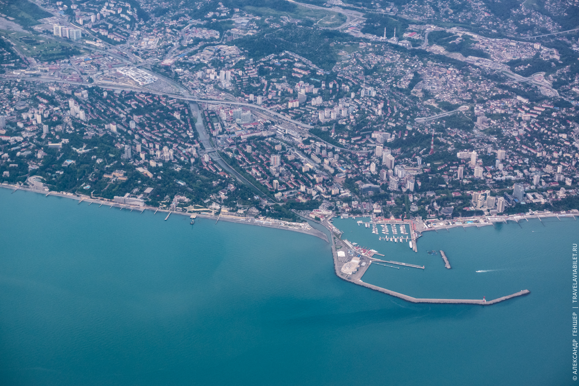 Центральный Сочи. Я попытался снять его панораму насколько это было возможно из иллюминатора самолета.
