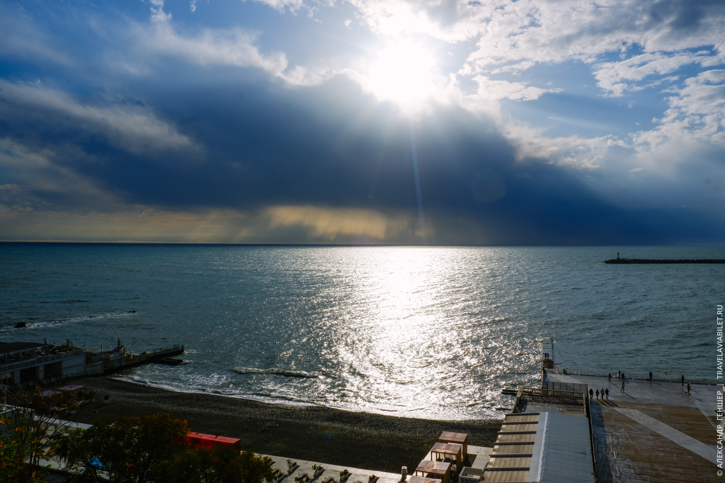 Дело было в декабре. Мы застали сильный шторм. На фото ниже видно как он приближается. Ночью ветер в номере так задувал, что получались мелодии из завываний. На следующий день ближайший пляж закрыли из-за огромных волн.