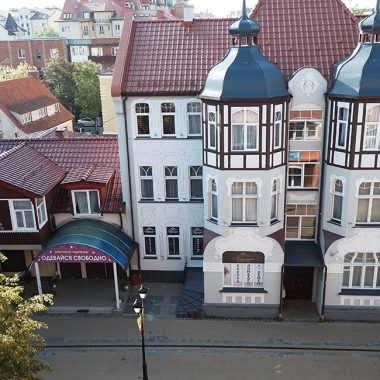 Заселились в Art Cranz. Утром из окна открылся прекрасный европейский пейзаж. Вообще-то до 1945 года этот город принадлежал Германии и назывался Кранц. В Восточной Пруссии он славился своими санаториями, грязевыми ваннами, разными купальнями, увеселительными заведениями и минеральными источниками. В 1816 году Кранц даже получил статус Королевского курорта. К слову, сегодня Зеленоградск по-прежнему является курортом федерального значения, специализирующимся на бальнеотерапии. А немцы по-прежнему могут приезжать сюда в гости лечиться и отдыхать.